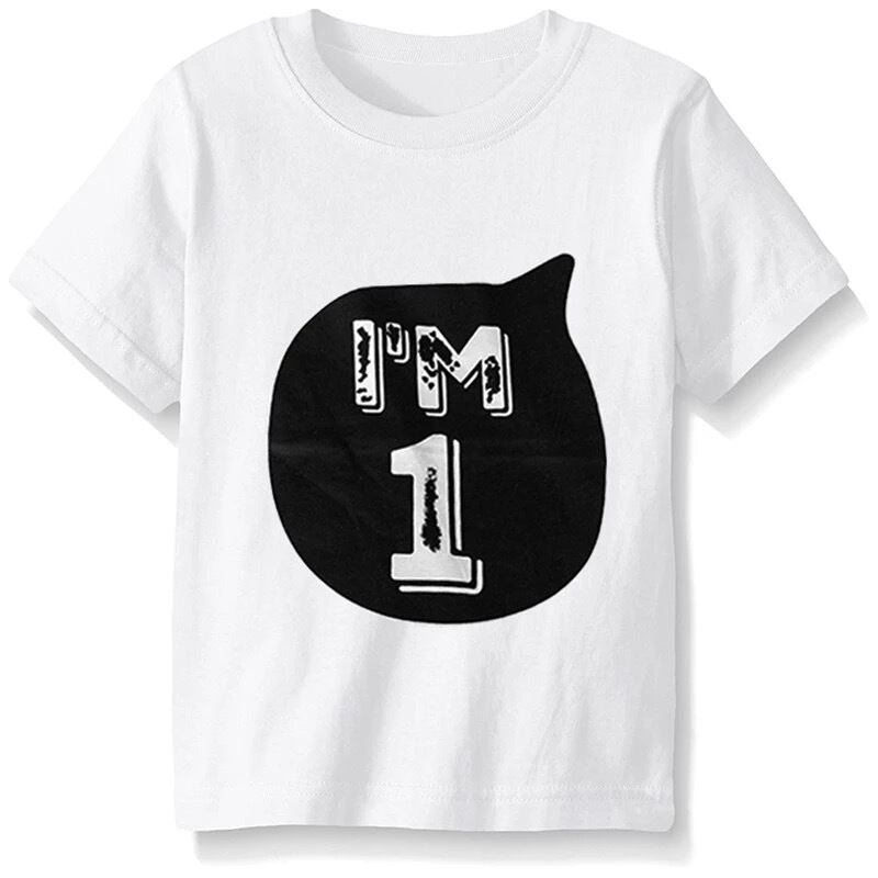 一歳のお誕生日にピッタリのTシャツ。 記念撮影やお誕生日会、 ギフトにもオススメです。 size 80 color black white